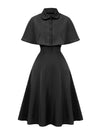 Abito con mantella e revers a tinta unita nero anni '50 – Retro-Stage.it