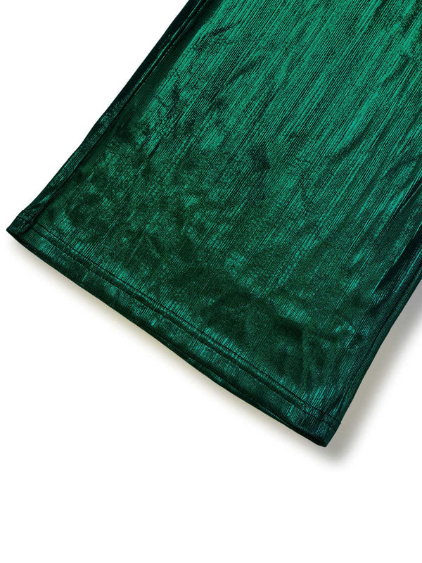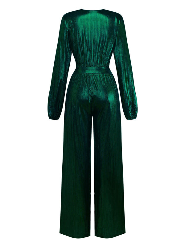 Tuta lunga metallizzata con scollo a V e maniche a lanterna verde anni – Retro-Stage.it