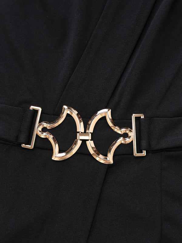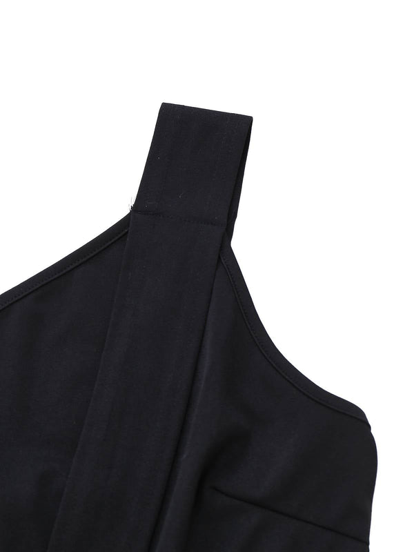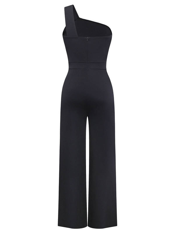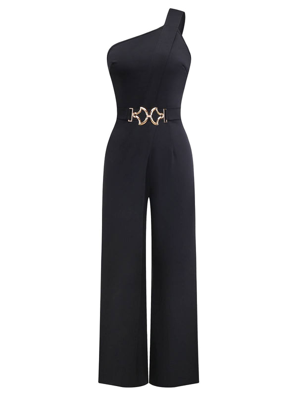 Tuta lunga monospalla e gamba larga con cintura nero anni '80