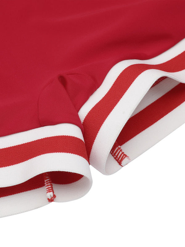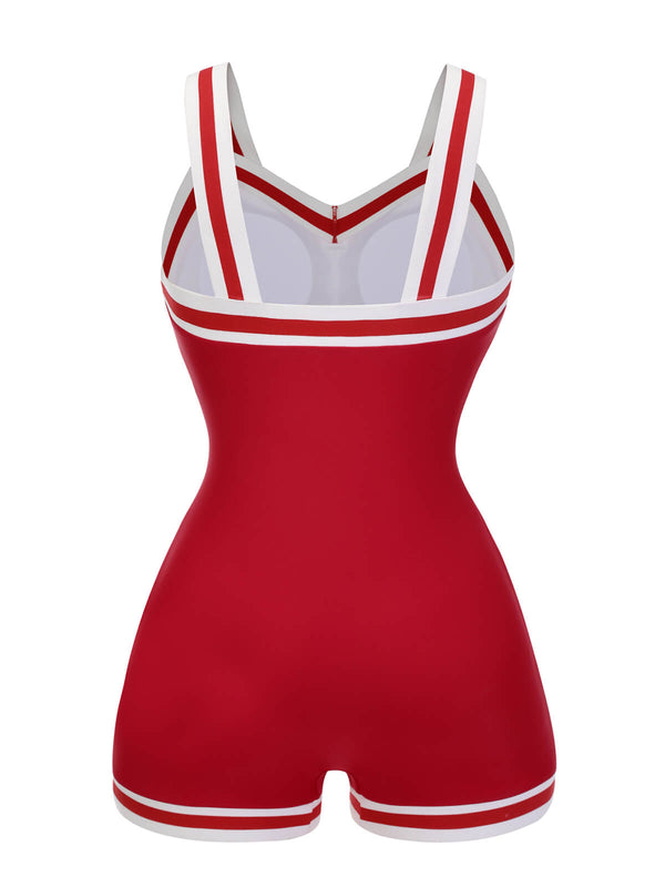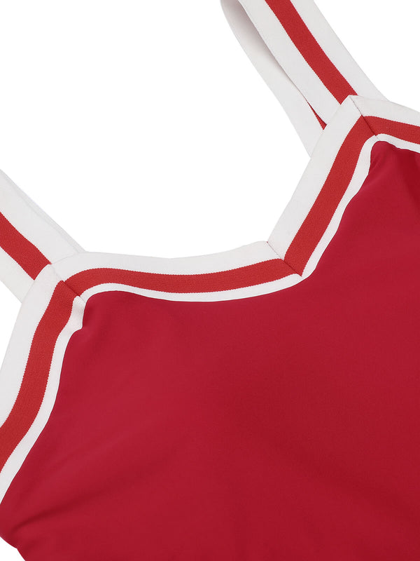 Costumi intero con scollo a V patchwork tinta unita rosso anni '40