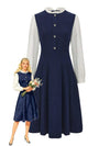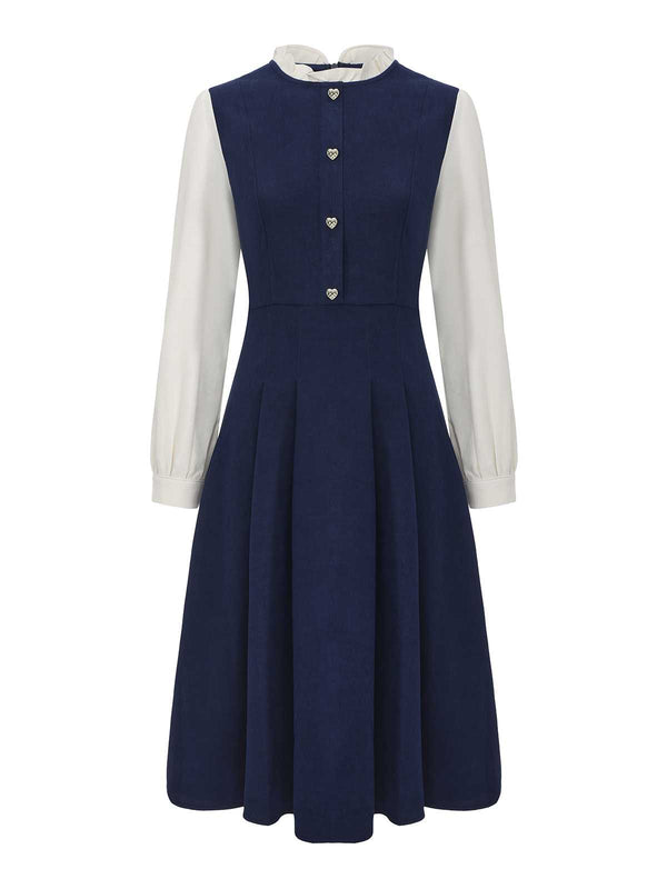 Abito con colletto a balze e bottoni a cuore blu navy anni '80 – Retro-Stage.it
