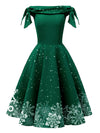 Abito fiocco di neve con spalle scoperte verde anni '50
