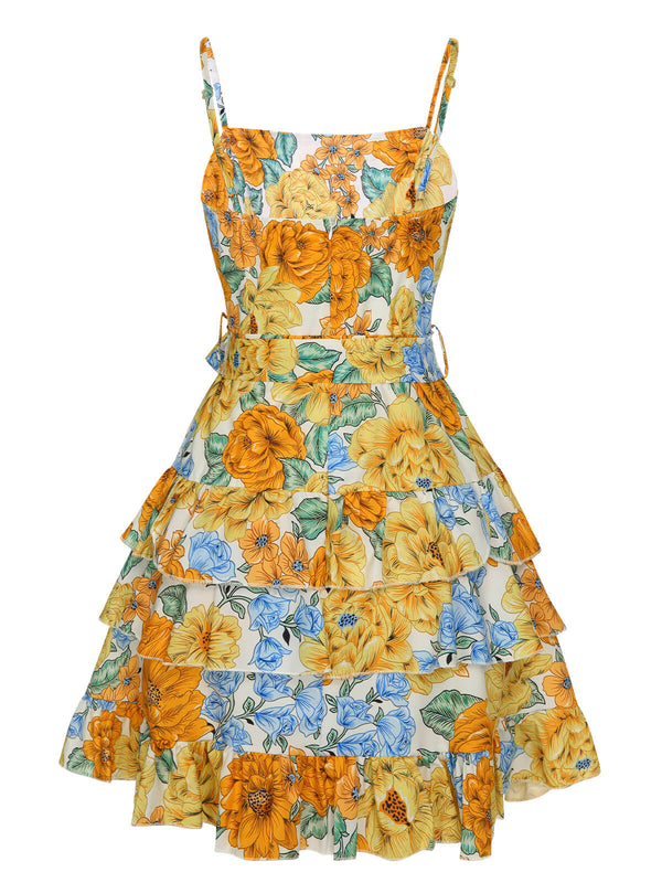 Abito floreale a strati spalline sottili multicolore anni '80 – Retro-Stage.it