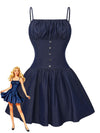 Mini abito blu increspato con cinturino spaghetti anni '60 – Retro-Stage.it