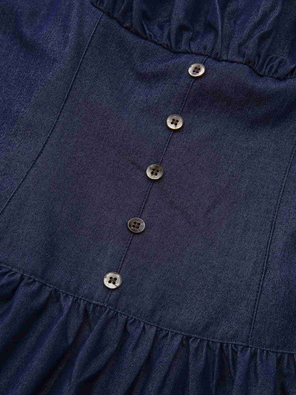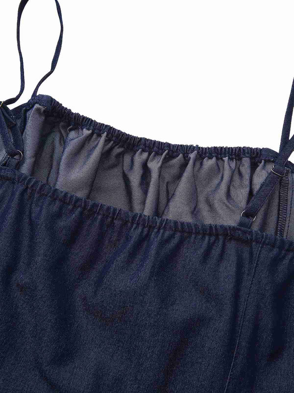Mini abito blu increspato con cinturino spaghetti anni '60