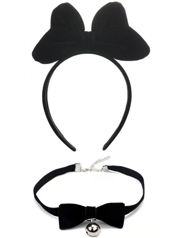 Cerchietto per capelli natalizio in velluto con fiocco e collana girocollo