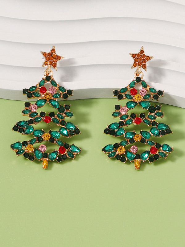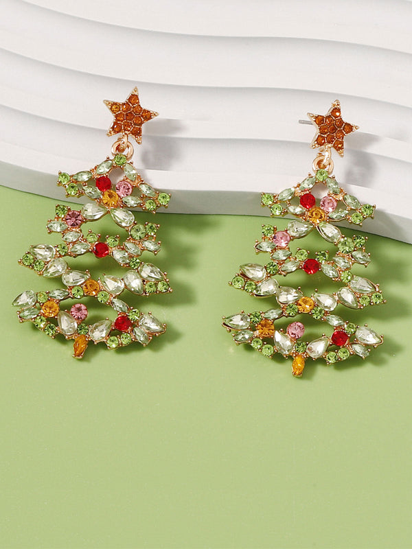 Orecchini in lega con diamanti intarsiati a forma di albero di Natale