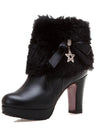 Stivali alti in pelle con patchwork di pelliccia e strass