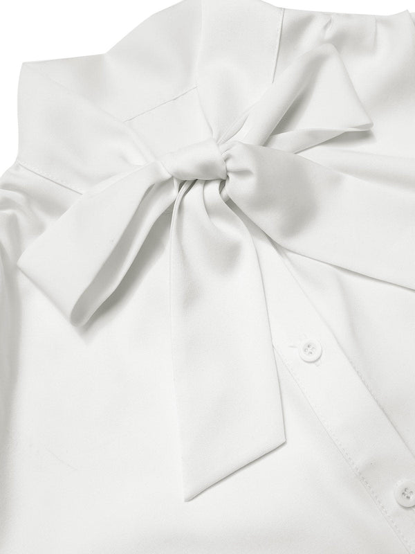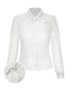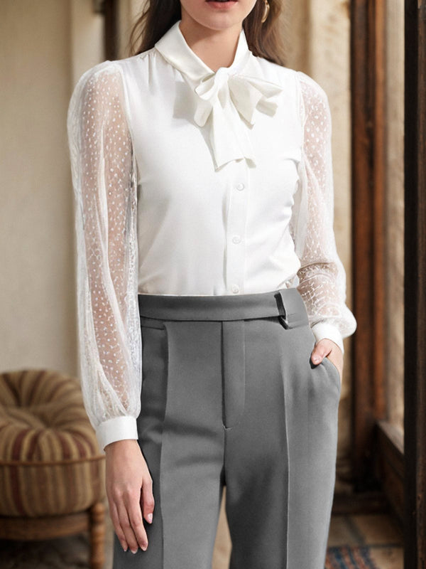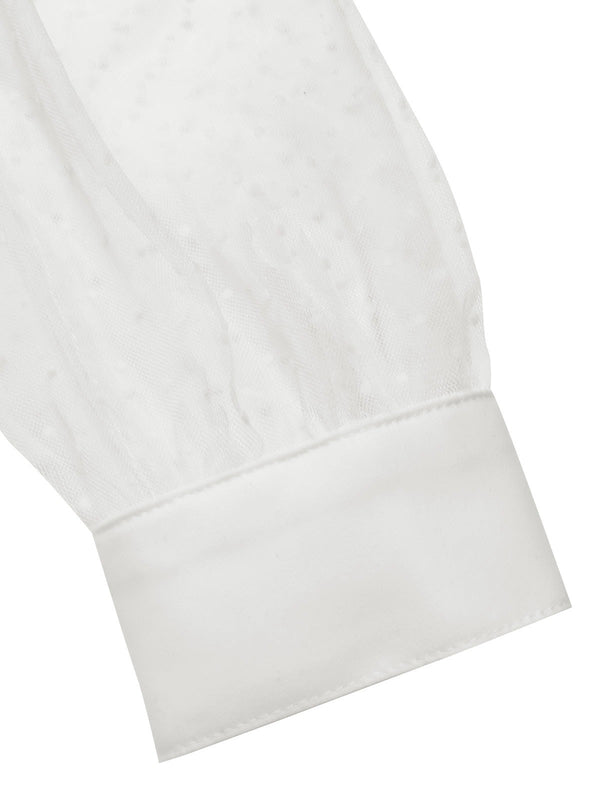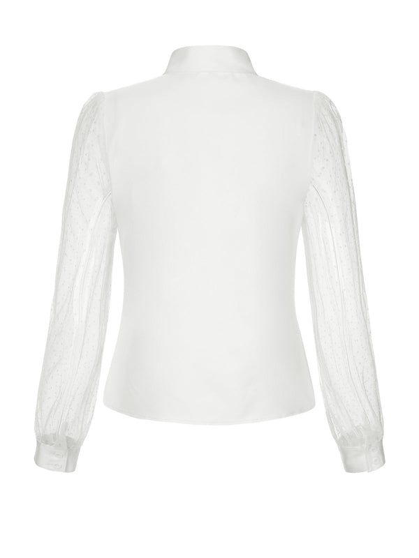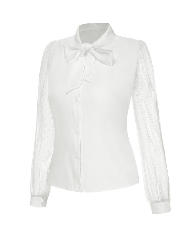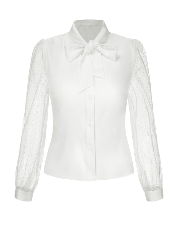 Camicetta con pois in rete e collo annodato bianco anni '40