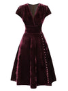 Abito in velluto perla scollo a V profondo rosso anni '40