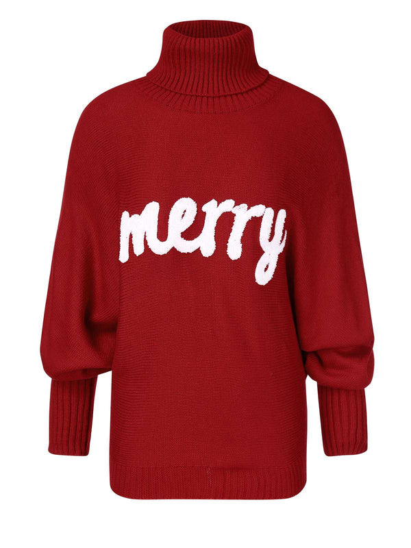 Maglione dolcevita con stampa natalizia rosso anni '80