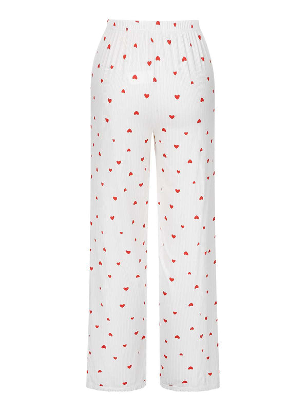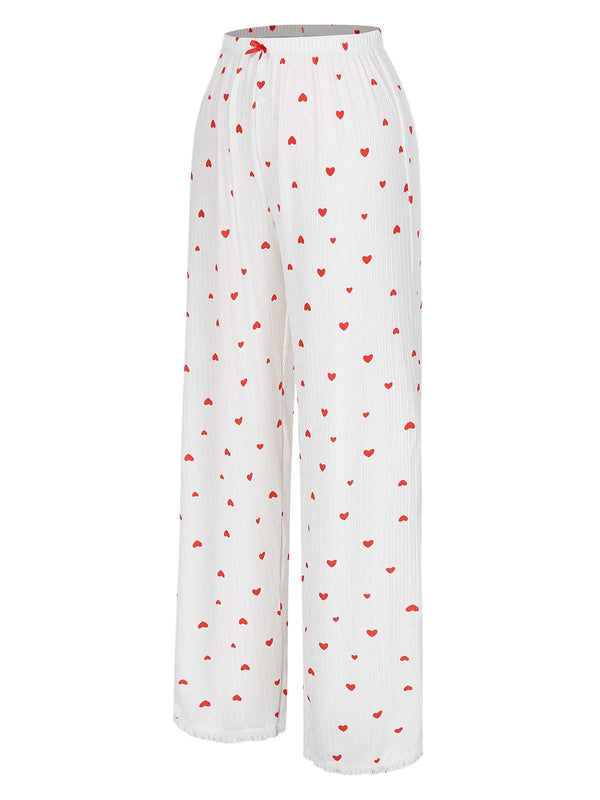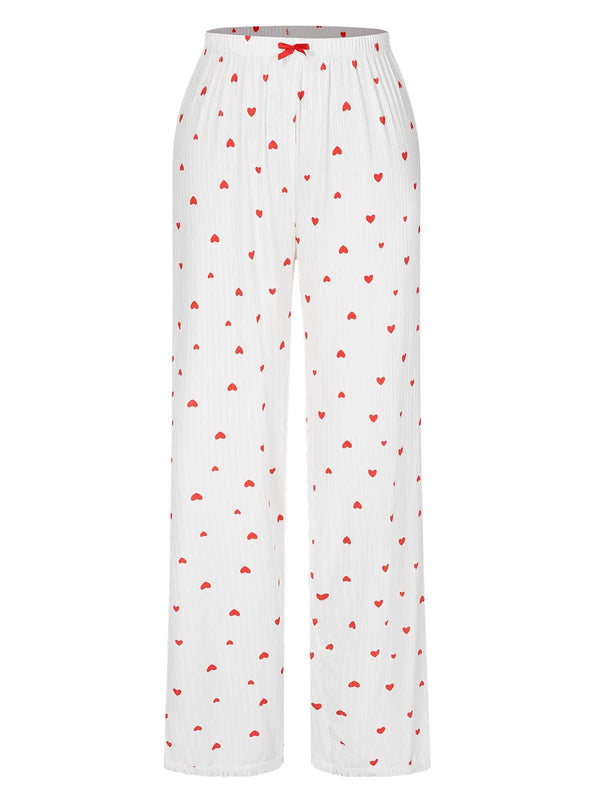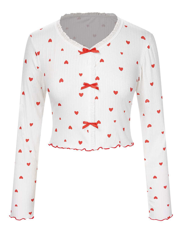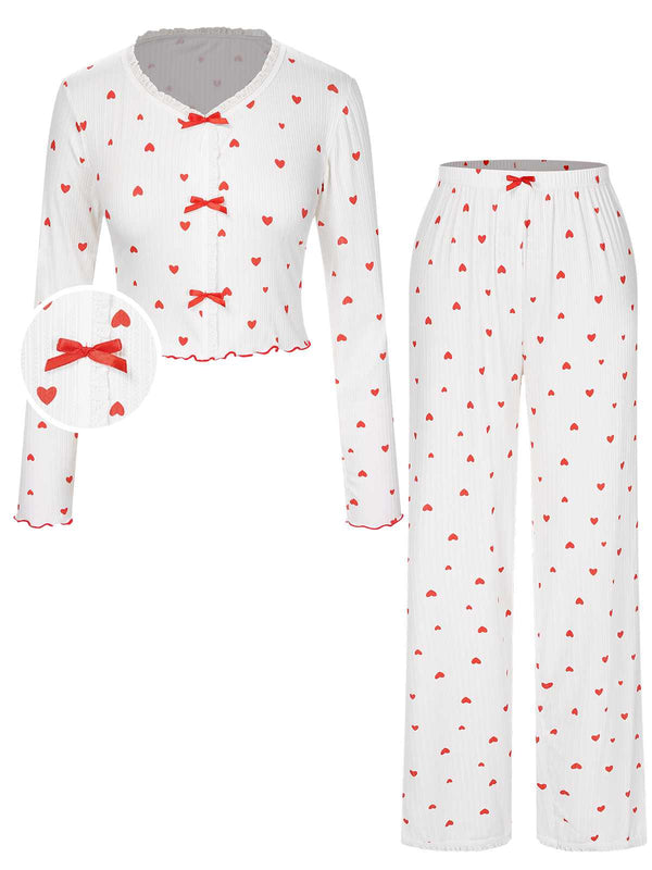 Pigiama a maniche lunghe con fiocco a cuore bianco anni '70