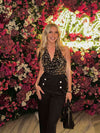 Tuta lunga dorata paillettes scollo all'americana degli anni '30