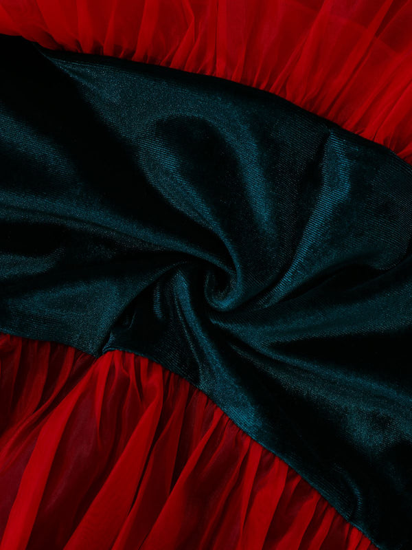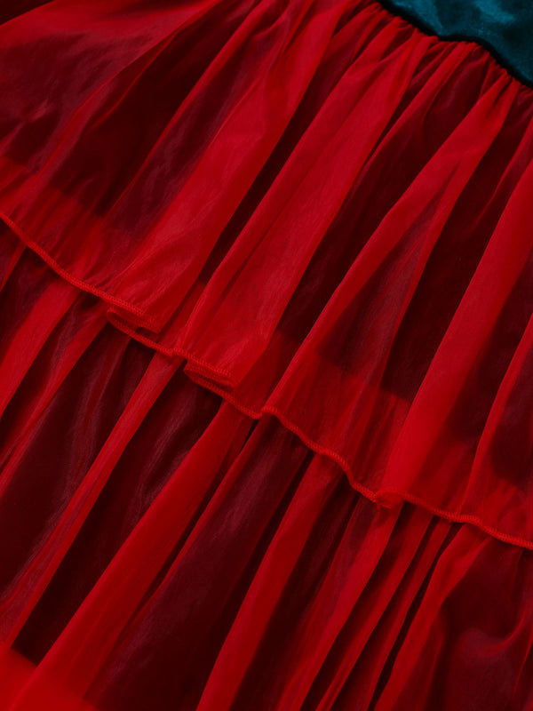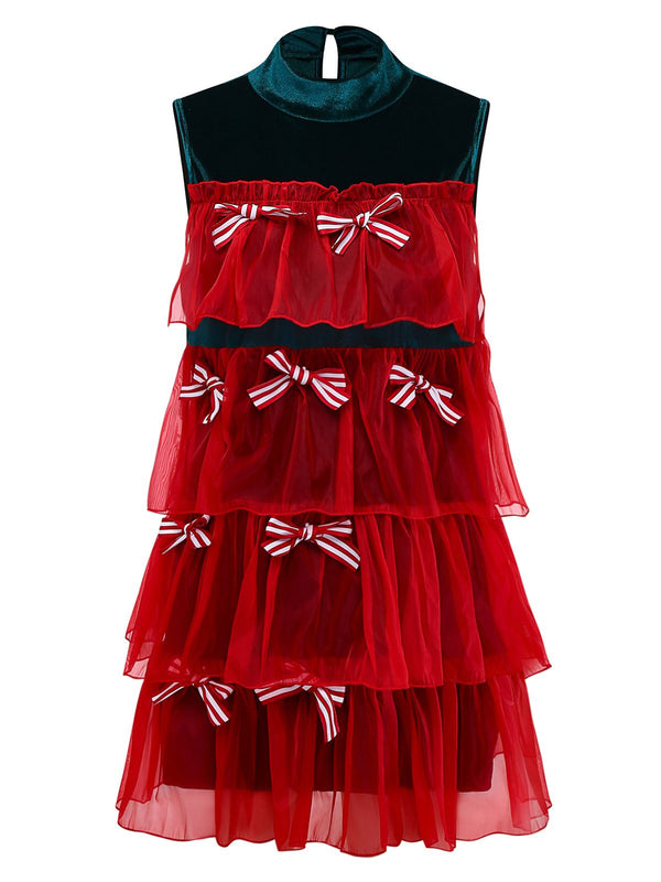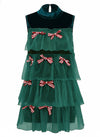 Abito con fiocco in rete e albero di Natale verde anni '60