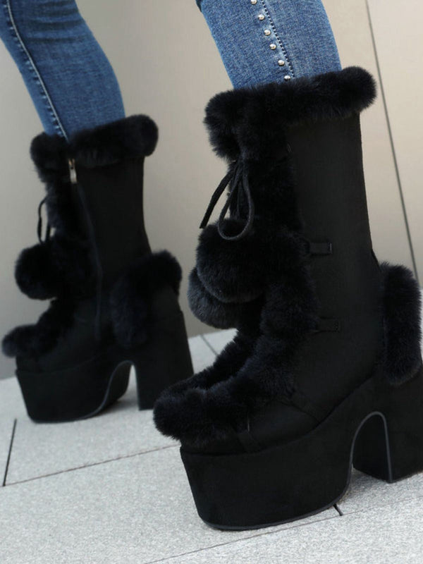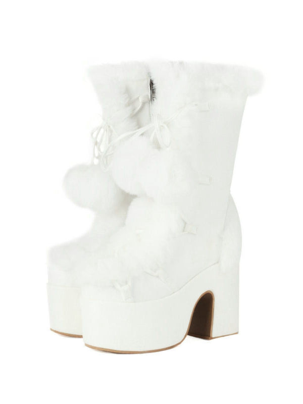 Stivali con punta tonda e tacco alto in pelliccia sintetica