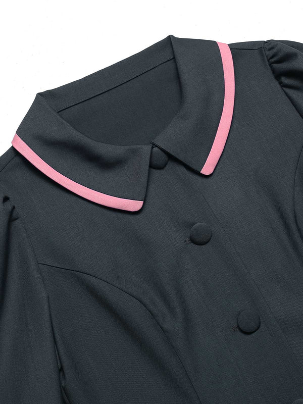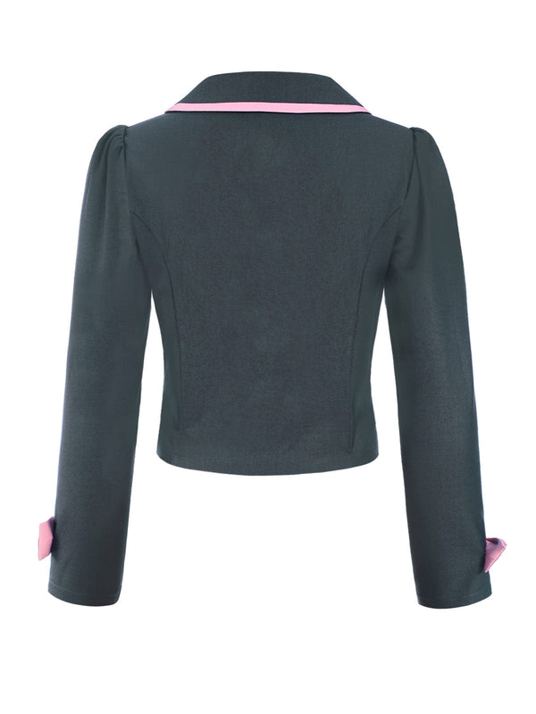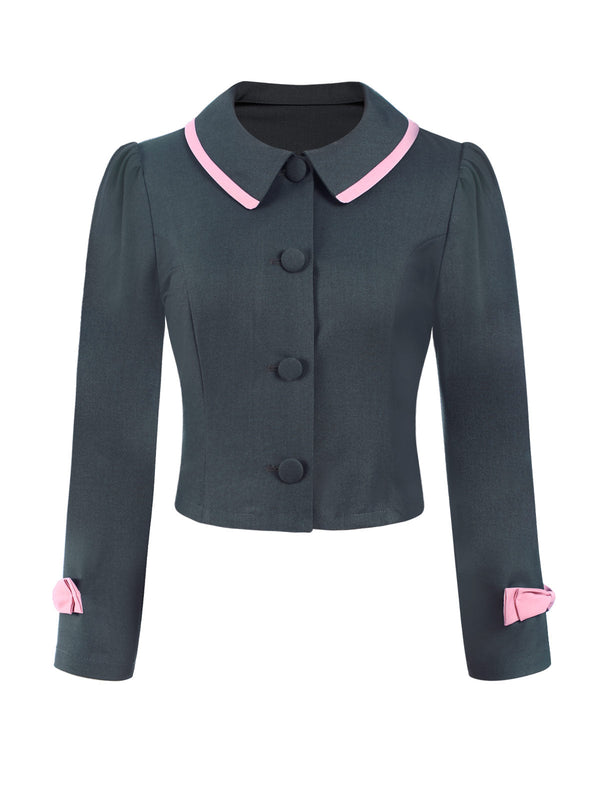 Cappotto corto con fiocco sul risvolto grigio scuro anni '50