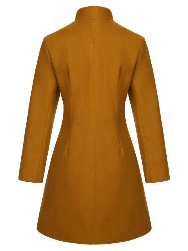 Cappotto in lana tinta unita con revers giallo medio anni '40