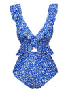 Costumi intero con volant floreale blu anni '50 – Retro-Stage.it