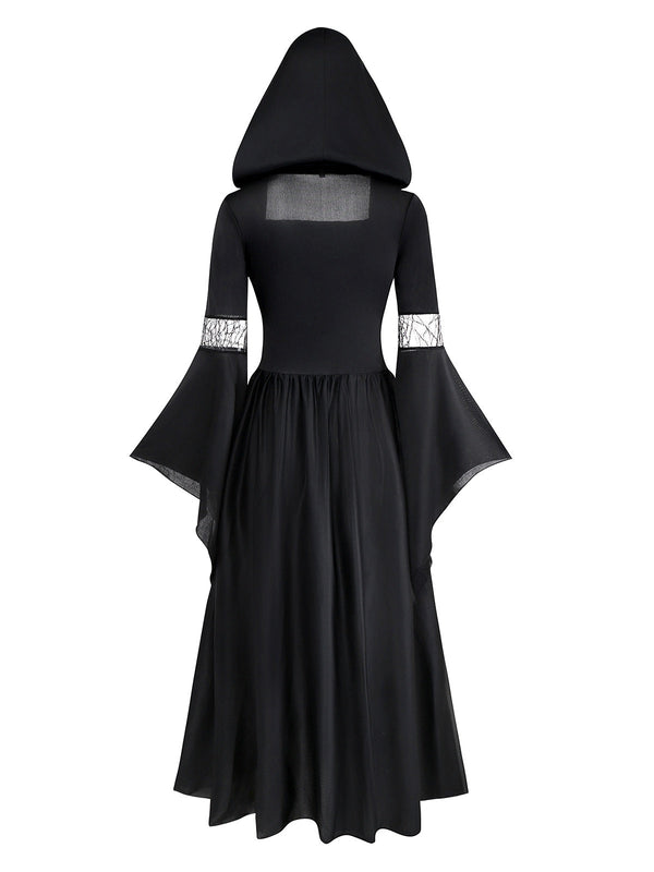 Abito con cappuccio e lacci da strega nero e blu anni '30