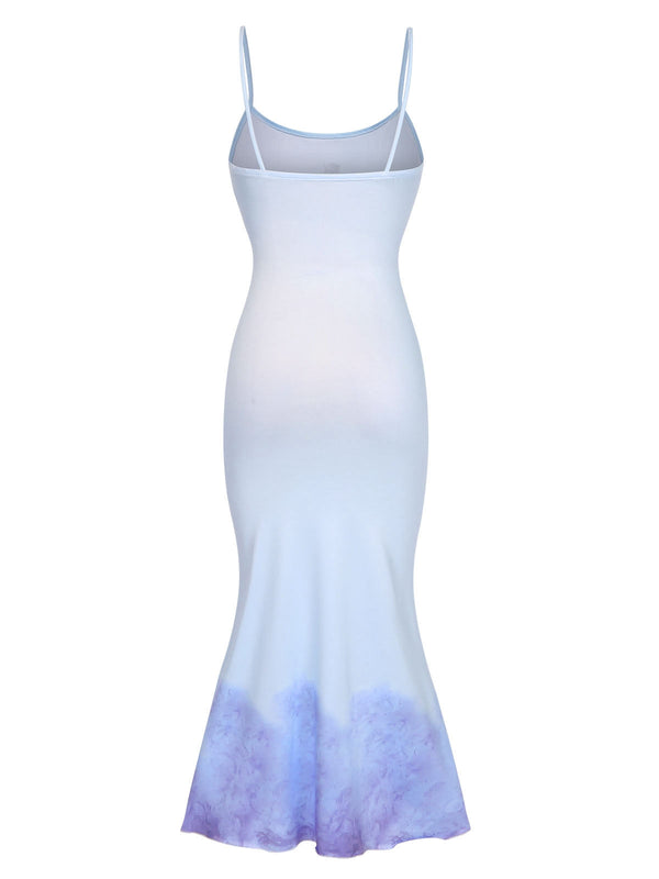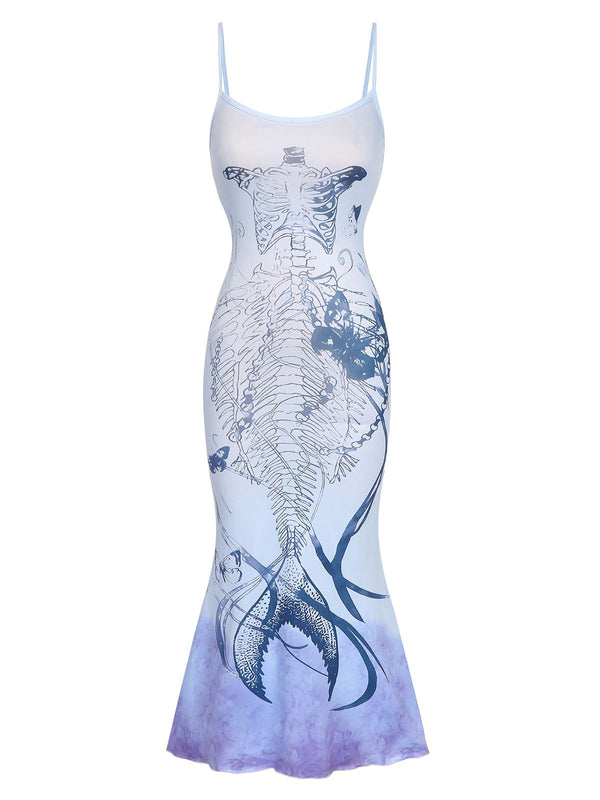 Abito con coda di pesce e scheletro a farfalla blu anni '30