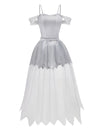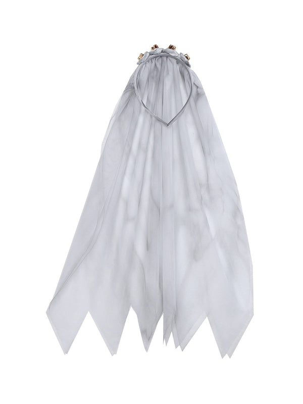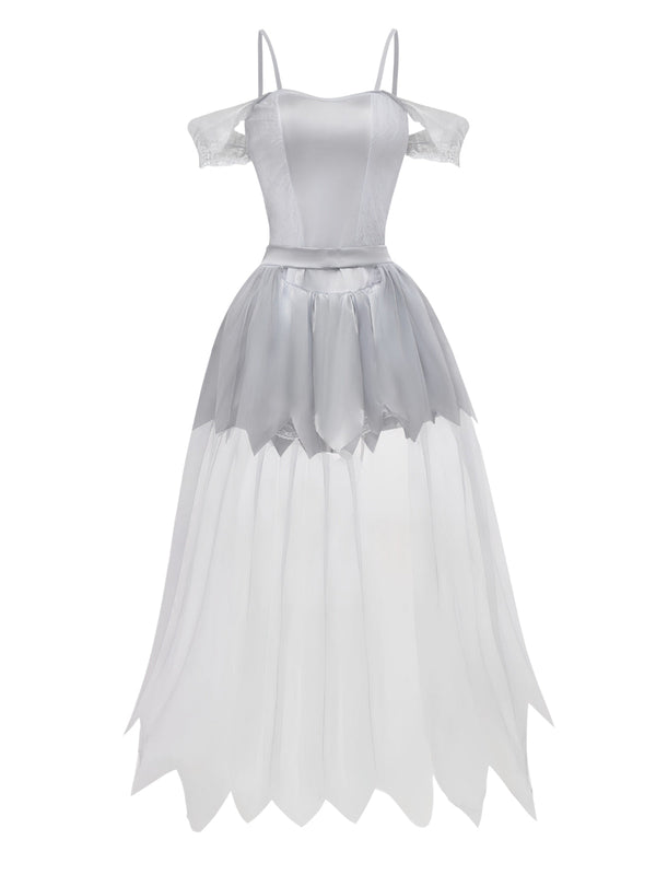 Abito da sposa zombie in pizzo e rete Halloween bianco anni '60