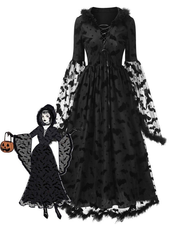 [Prevendita] Abito da strega con mantello a pipistrello nero anni '40