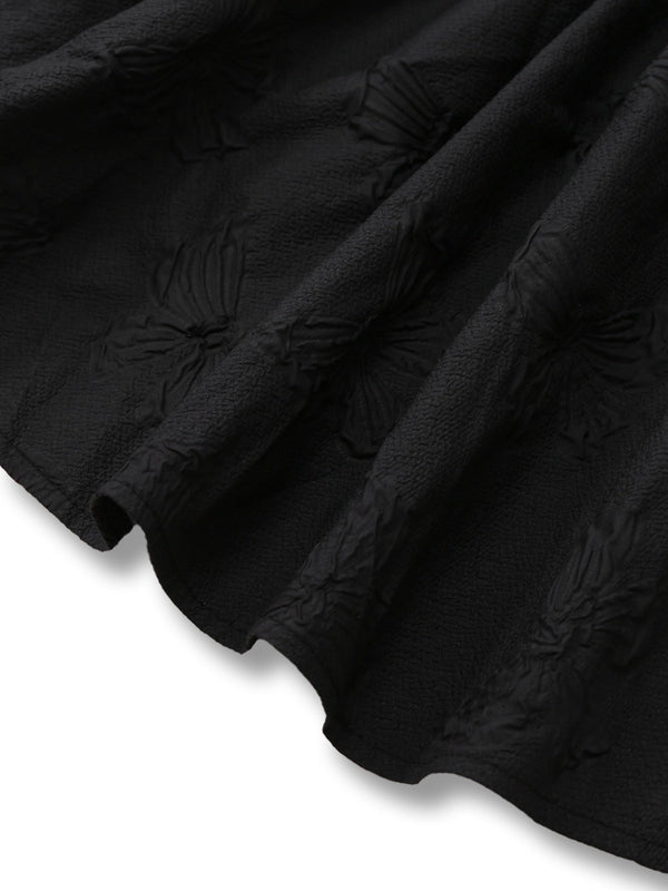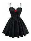 Abito gotico in jacquard con rose 3D con lacci nero anni '60