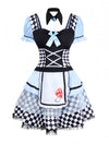 Abito grembiule Alice con maniche a sbuffo blu anni '60
