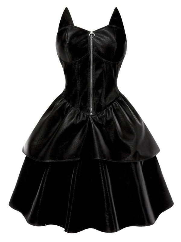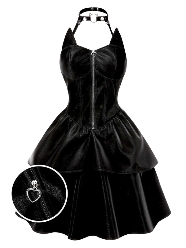 Immergiti in un'atmosfera spettrale ed elegante con questo abito in pelle nero da ragazza-gatta di Halloween anni '50! Realizzato in elegante similpelle con un giocoso colletto a forma di orecchie di gatto, una silhouette aderente e una gonna svolazzante, è perfetto per gli amanti del vintage che vogliono incantare e ammaliare. Ideale per feste di Halloween o serate a tema retrò, questo abito fonde il classico stile anni '50 con un tocco malizioso.