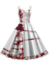 Abito macchie di sangue e rose con spalline Halloween anni '50