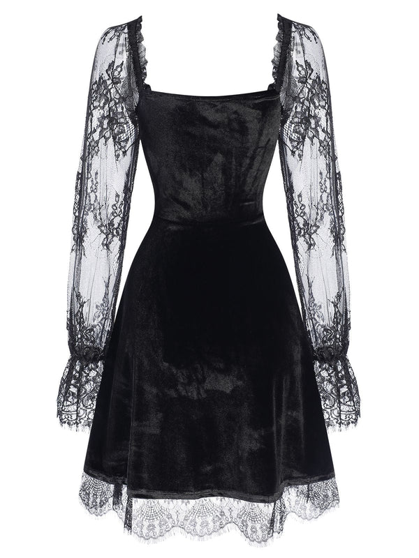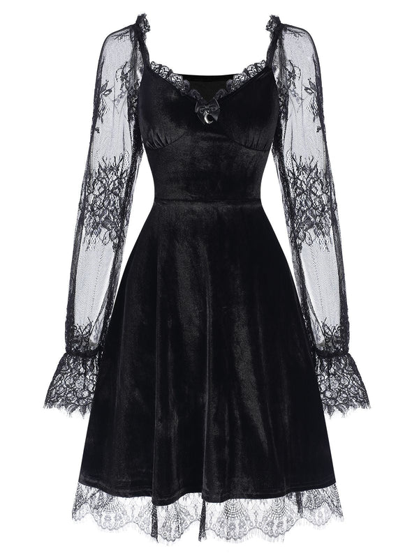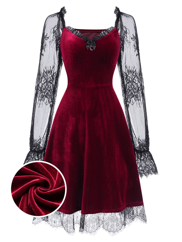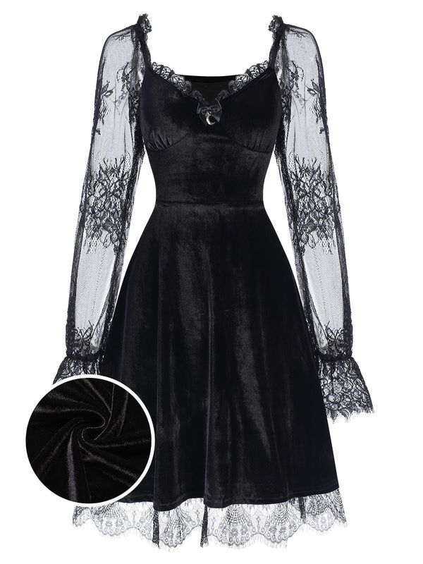 Abito patchwork svasato in pizzo di velluto anni '40 – Retro-Stage.it