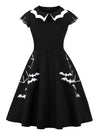 Abito ricamato con colletto a pipistrello Halloween nero anni '50
