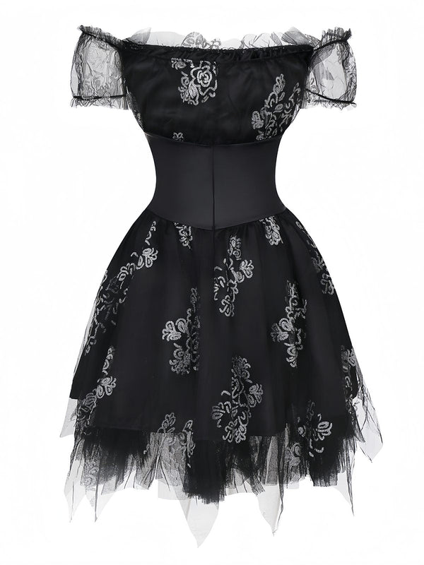 Abito sposa vampiro in rete con spalle scoperte nero anni '70