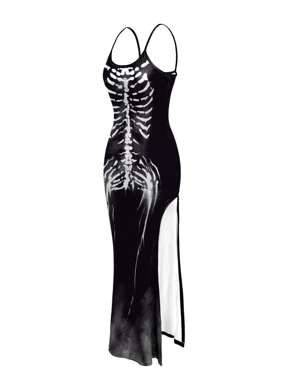 Abito scheletro con spalline sottili e spacco nero anni '30