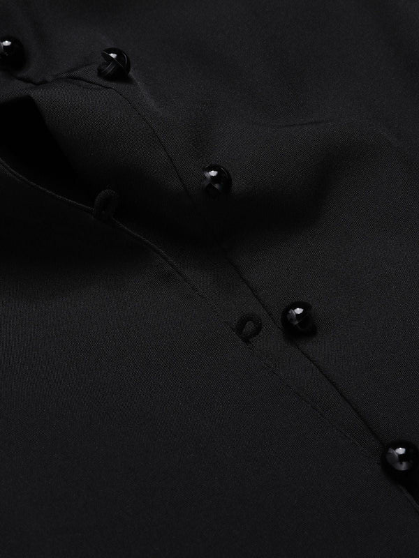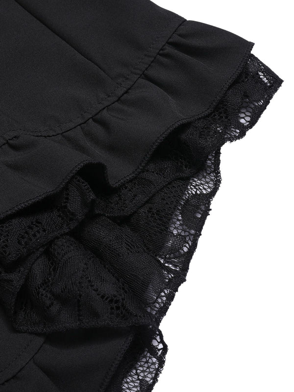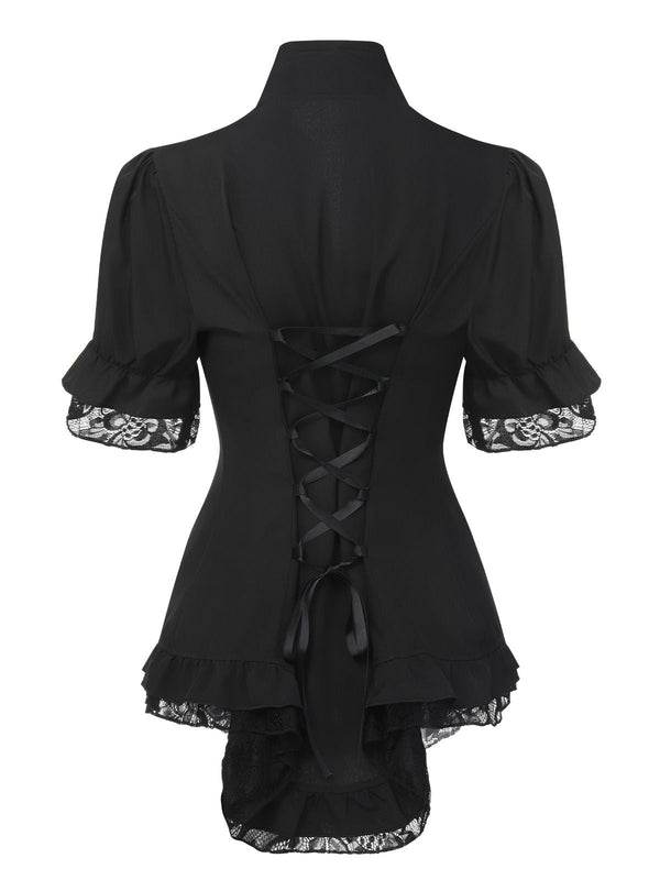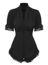 Black 1930s V-Neck Lace Victorian Blouse