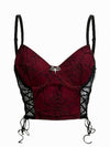 Canotta in pizzo a ragnatela di pipistrello bordeaux anni '70
