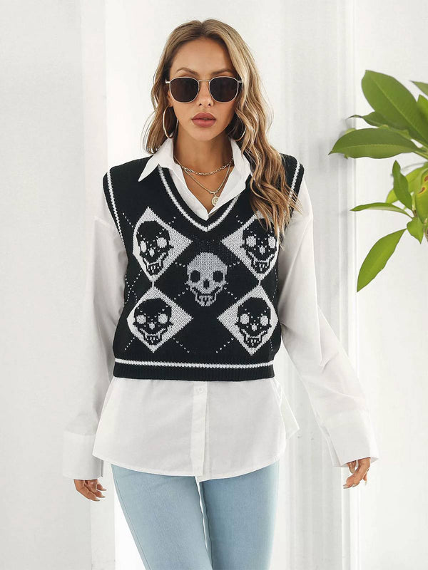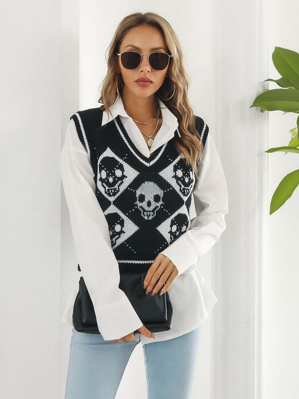 Gilet con motivo a rombi e teschio Halloween anni '80