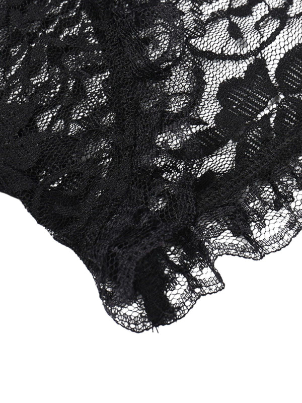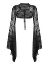 Top con maniche svasate in pizzo di Halloween nero anni '30