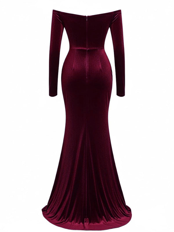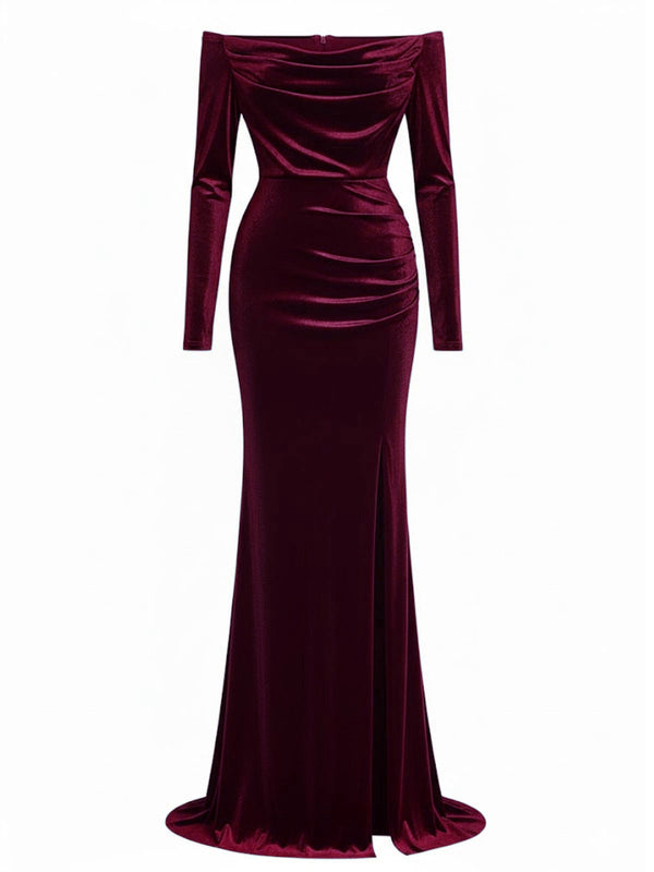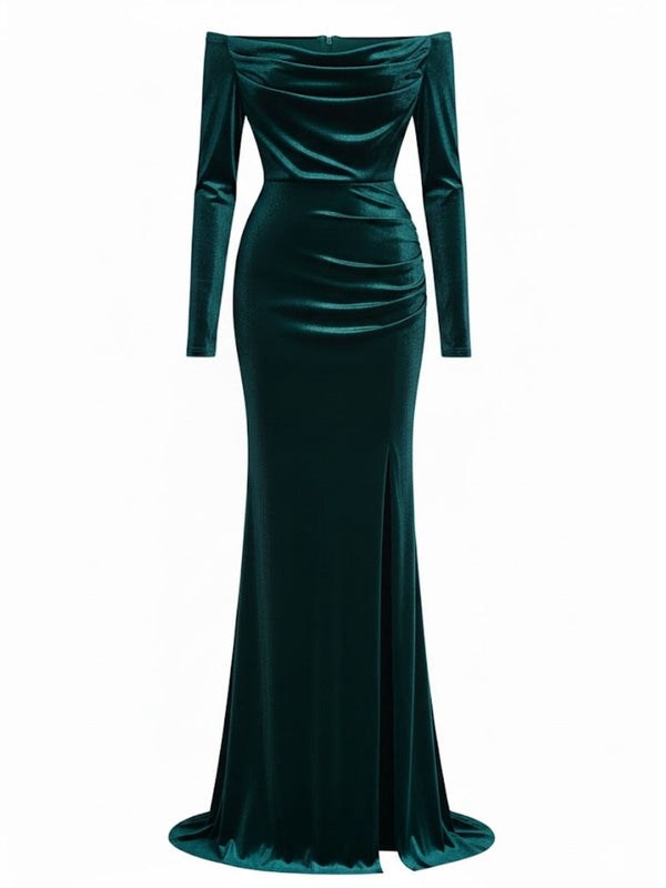 Abito in velluto con spalle scoperte arricciato e spacco laterale anni – Retro-Stage.it