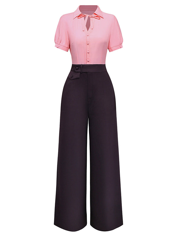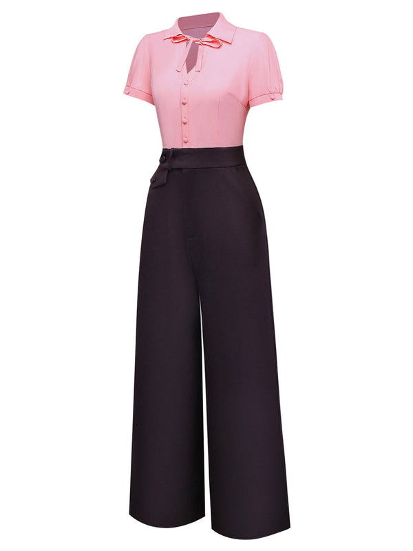 [Prevendita] Tuta lunga con colletto a fiocco rosa e grigio anni '30