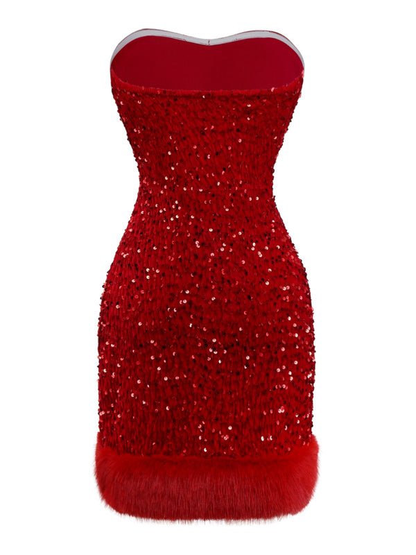 [Prevendita] 2PCS Abito in pelliccia con paillettes e velluto e scialle rosso anni '70