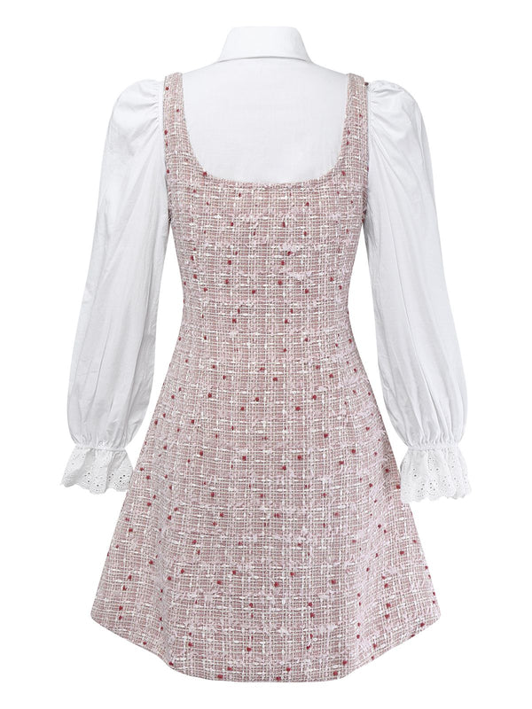 [Prevendita] 2PCS Camicetta con fiocco e abito in tweed bianco e rosa anni '60