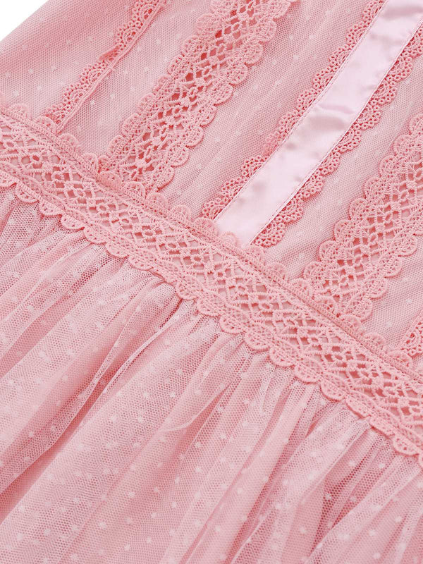 Abito in tulle senza maniche con fiocco in pizzo rosa anni '60 – Retro-Stage.it