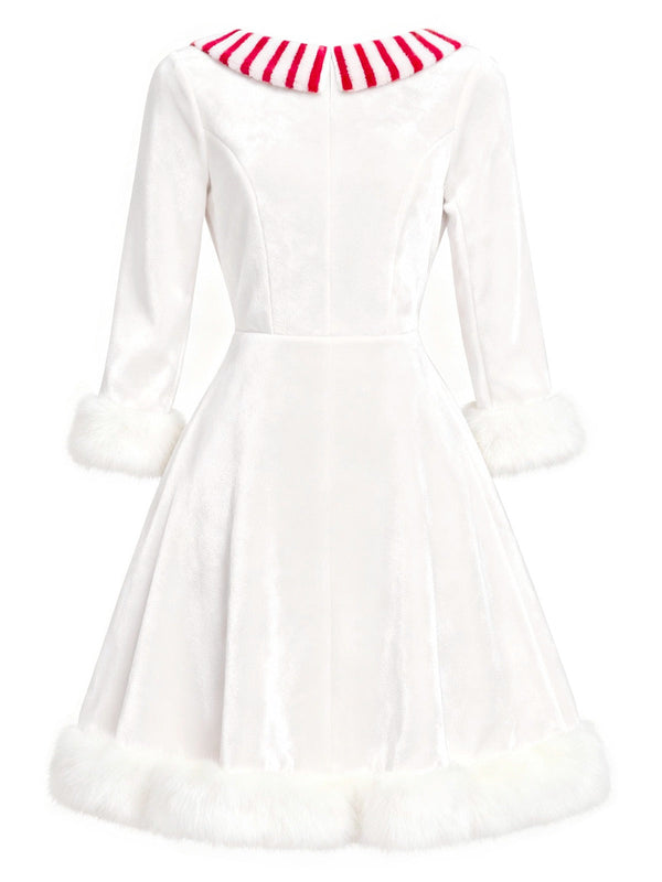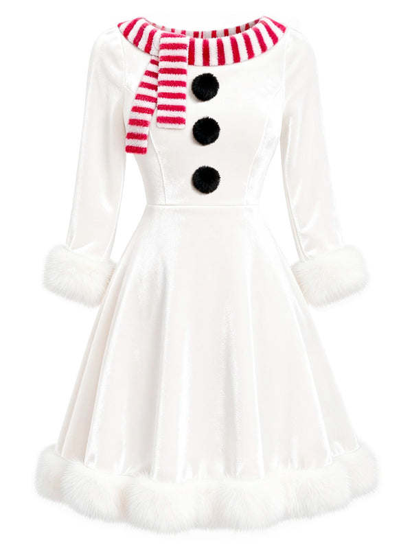 [Prevendita] Abito in velluto con pupazzo di neve natalizio bianco anni '50