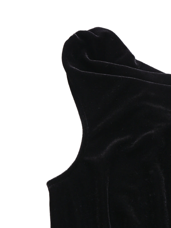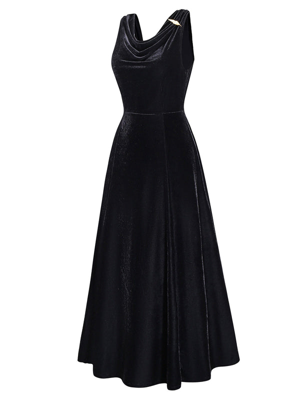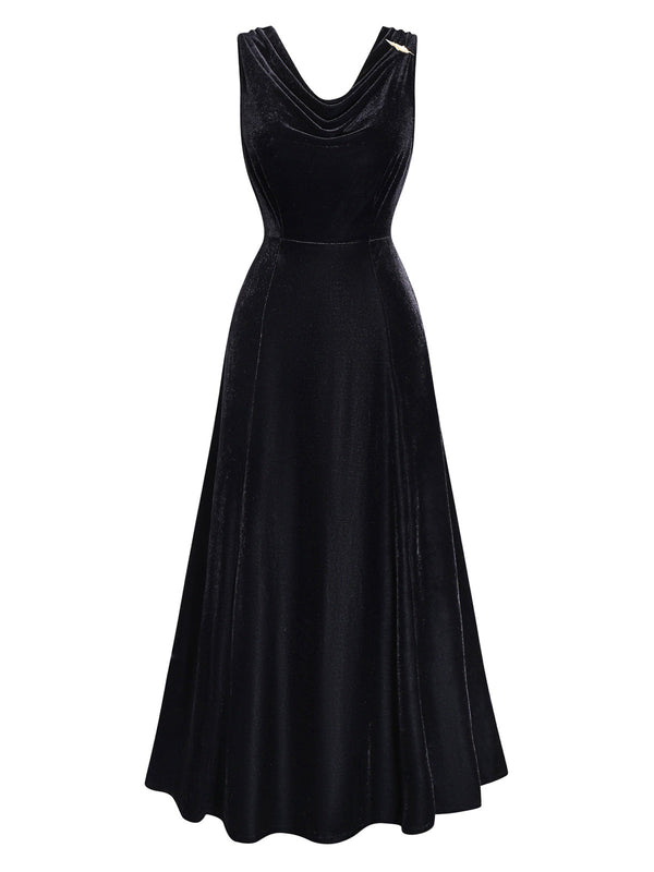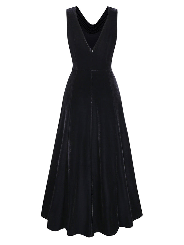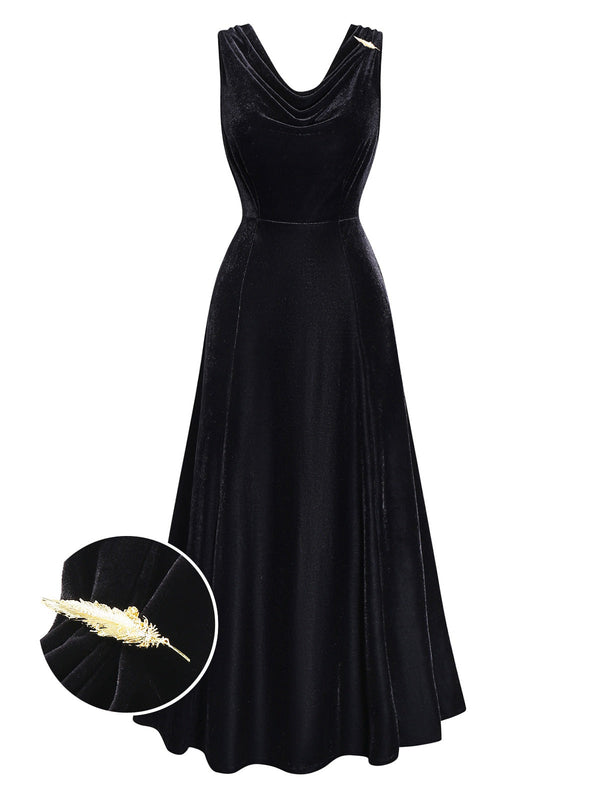 [Prevendita] Abito nero in velluto con spilla di piume anni '30