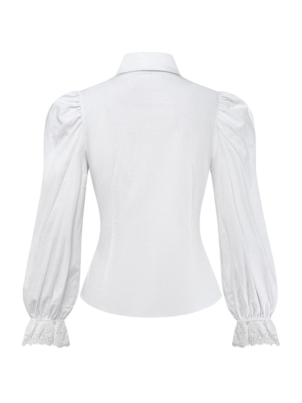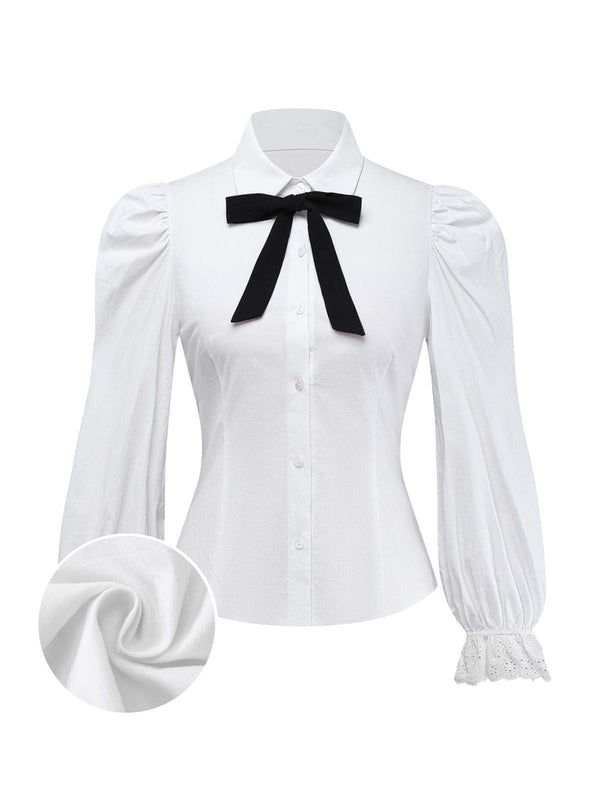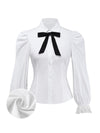 [Prevendita] Camicetta con fiocco e maniche a sbuffo bianco anni '60