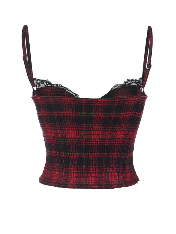 2PCS Top a quadri e gonna con orlo asimmetrico rosso anni '80