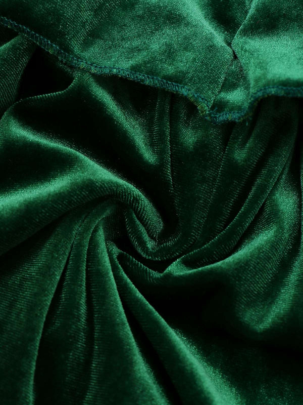 Abito a balze in velluto con collo alto e fiocco verde anni '60
