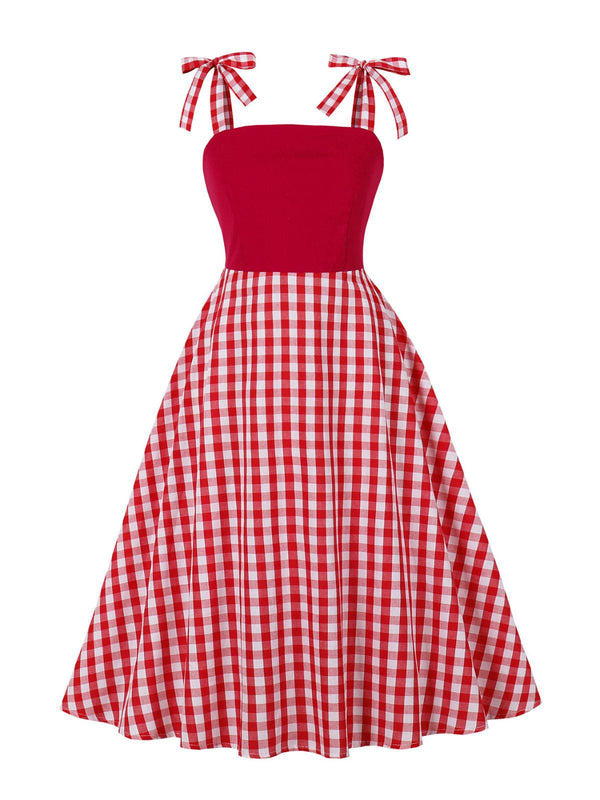 Abito a quadri con lacci sulle spalle rosso anni '50 – Retro-Stage.it