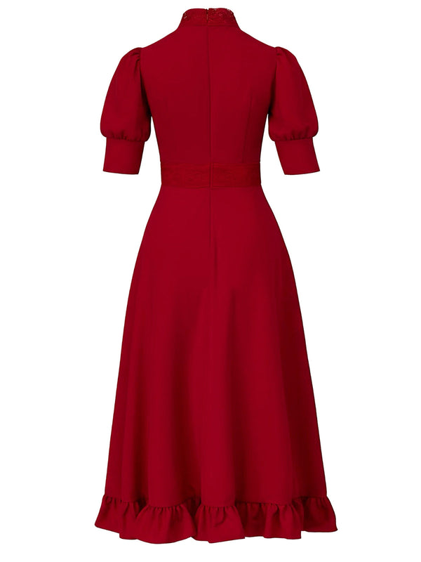 Abito X Prequel Pearl con orlo a balze in pizzo rosso anni '40